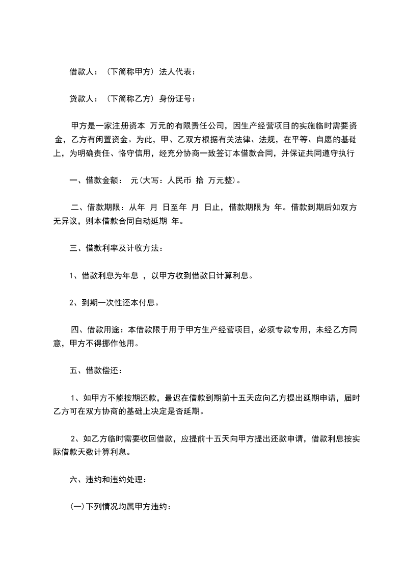 三、 借款期限 借款期为_____个月 。即_____年_____月____日至________年____月____日止