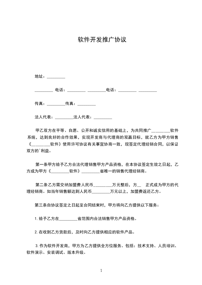 第一条甲方给予乙方合法代理销售甲方产品资格,在本协议签定生效之日起,乙方成为甲方《_________软件》_________省唯一的销售代理经销商。