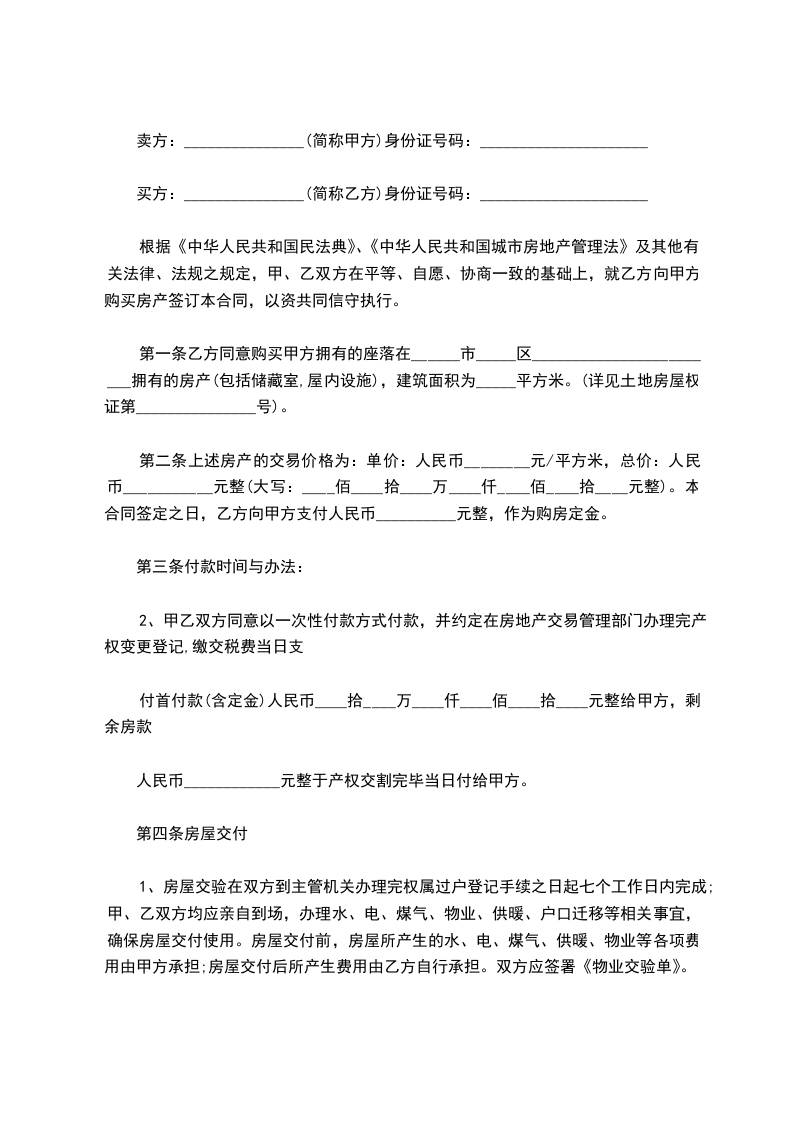 2、甲乙双方同意以一次性付款方式付款,并约定在房地产交易管理部门办理完产权变更登记,缴交税费当日支