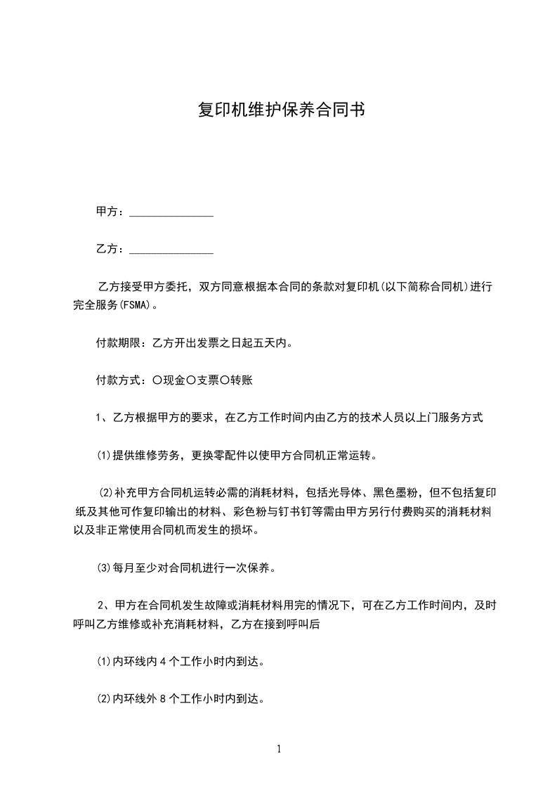 乙方接受甲方委托,双方同意根据本合同的条款对复印机(以下简称合同机)进行完全服务(FSMA)。