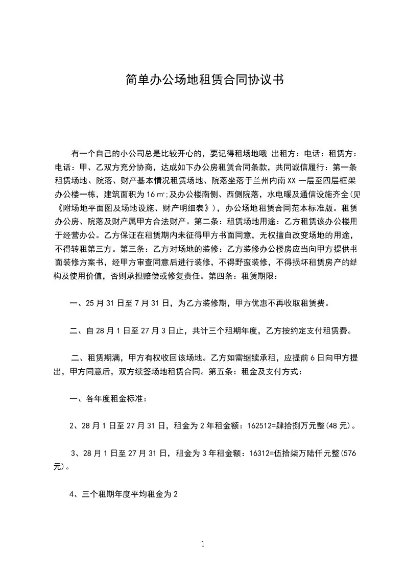 一、租凭场地及用途