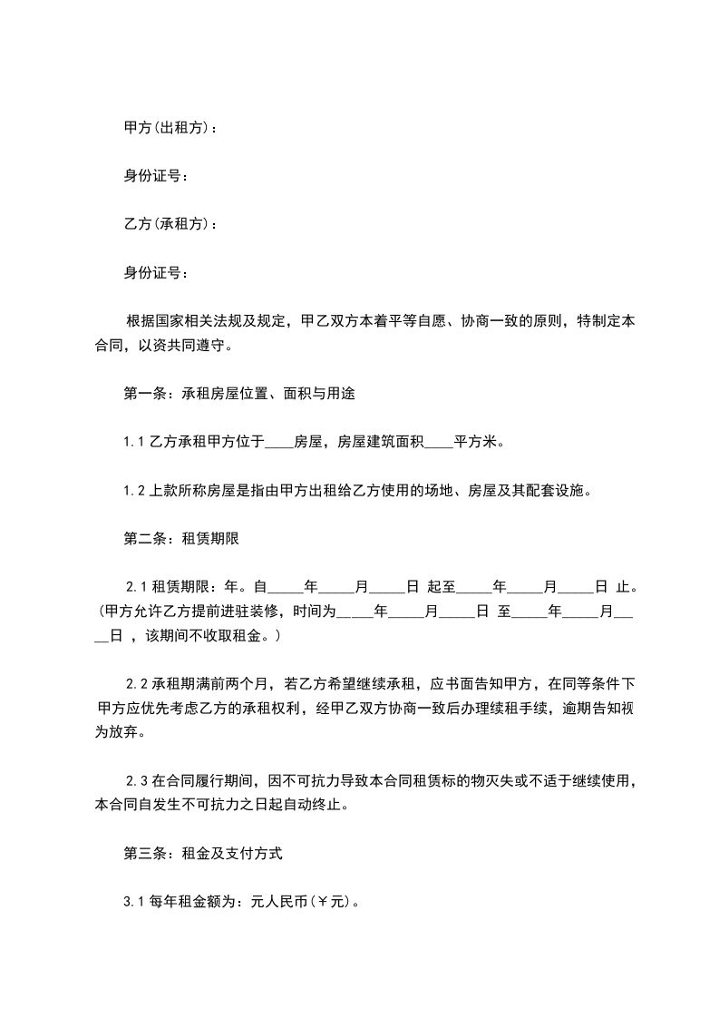 乙方租凭甲方____时间自____年____月____日起,租凭 时间自____年____月____日起,所租凭____等地终止日期至 年____月____日。