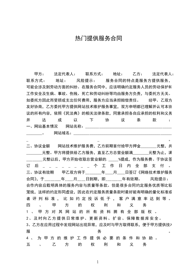 1、甲方在合同生效后向乙方支付_________万元人民币的合同款(大写:_________元人民币)。