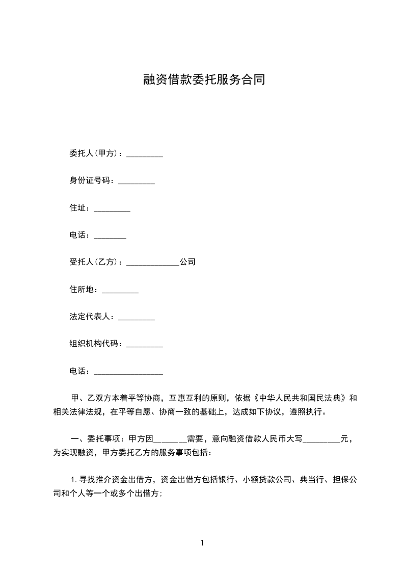 3、甲方委托乙方协助融资的数额为_ __人民币(大写);融资贷款期限为 ,但最少不得低于 ;融资利率在年利率%-年利率% 之间,具体由借贷双方商议,以甲方与出资方最终签署的融资借款合同约定为准。
