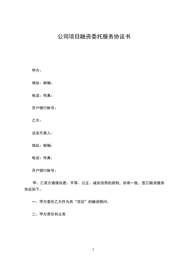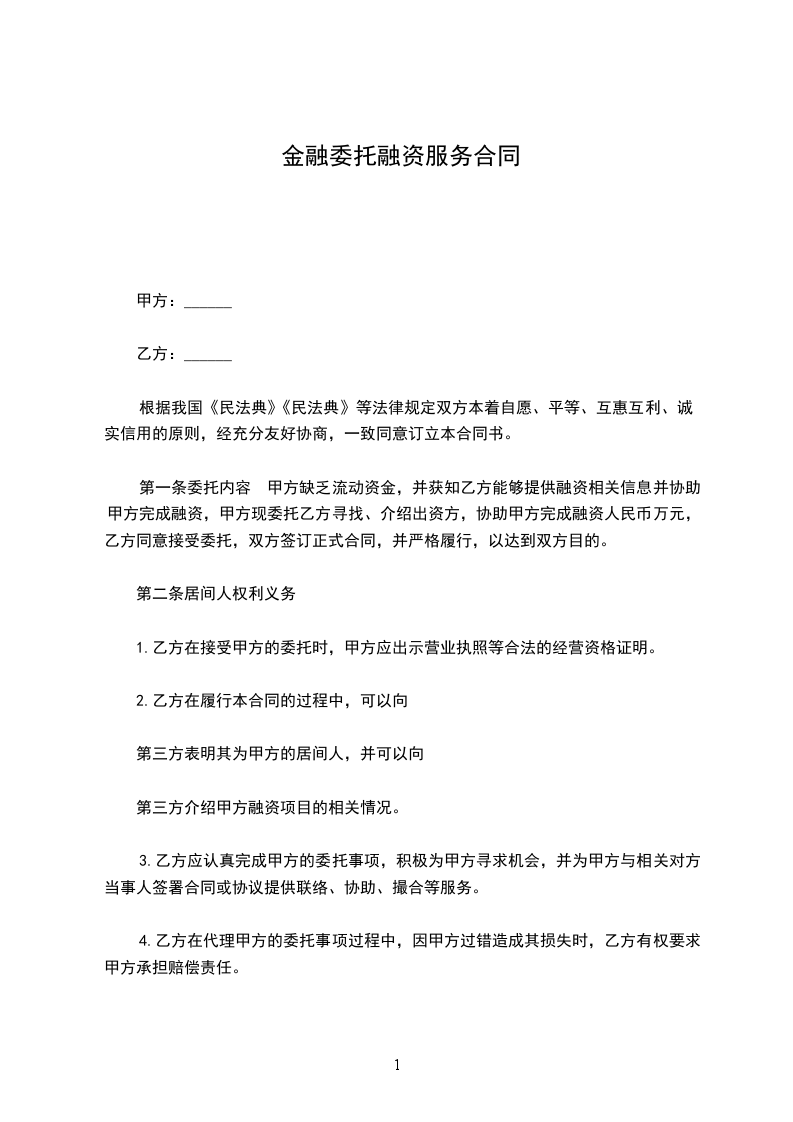 1、甲方以 项目融资需要委托乙方寻找或介绍出资方,乙方接受甲方委托。