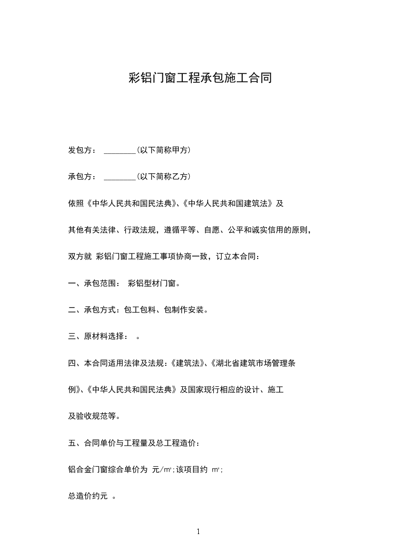 双方就 彩铝门窗工程施工事项协商一致,订立本合同:
