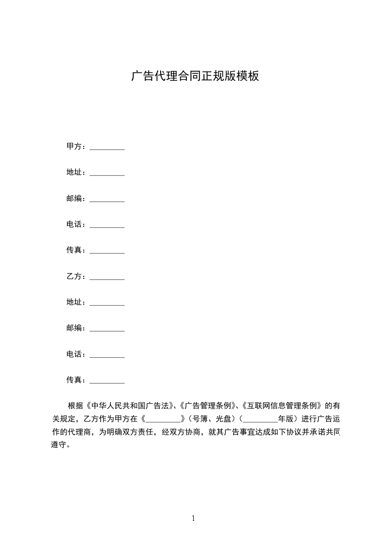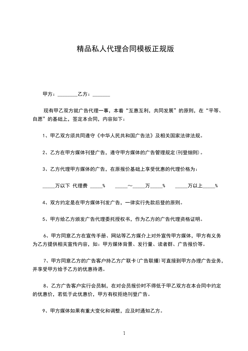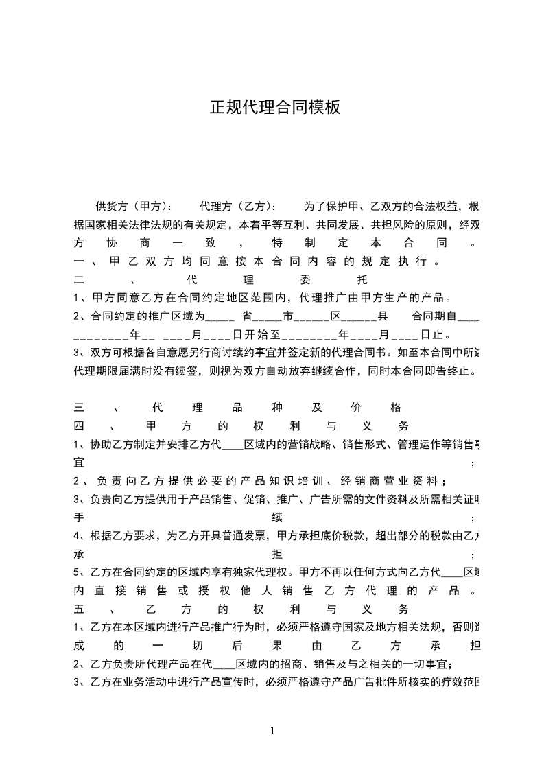 供货方(甲方): 代理方(乙方): 为了保护甲、乙双方的合法权益,根据国家相关法律法规的有关规定,本着平等互利、共同发展、共担风险的原则,经双方协商一致,特制定本合同。