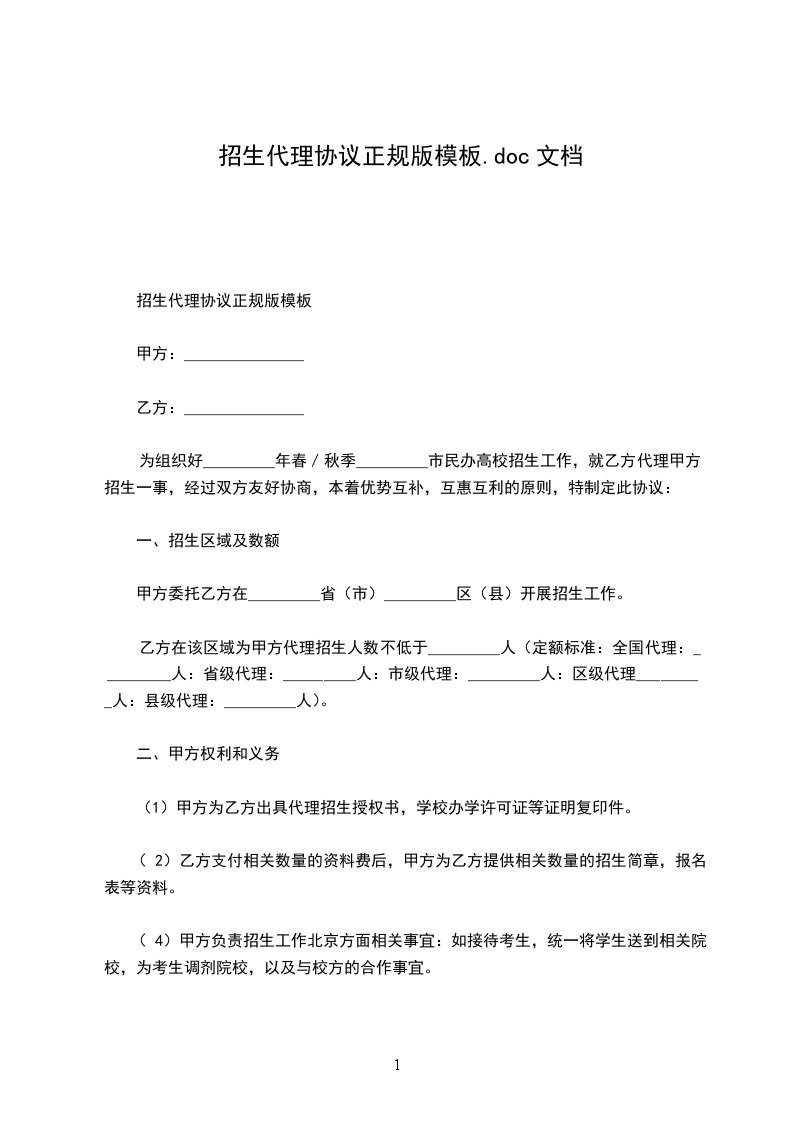 1、甲方同意乙方在合同约定地区范围内,代理推广由甲方生产的产品。