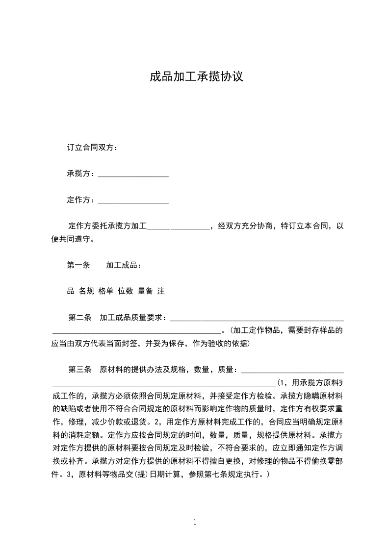 承揽方(全称):______