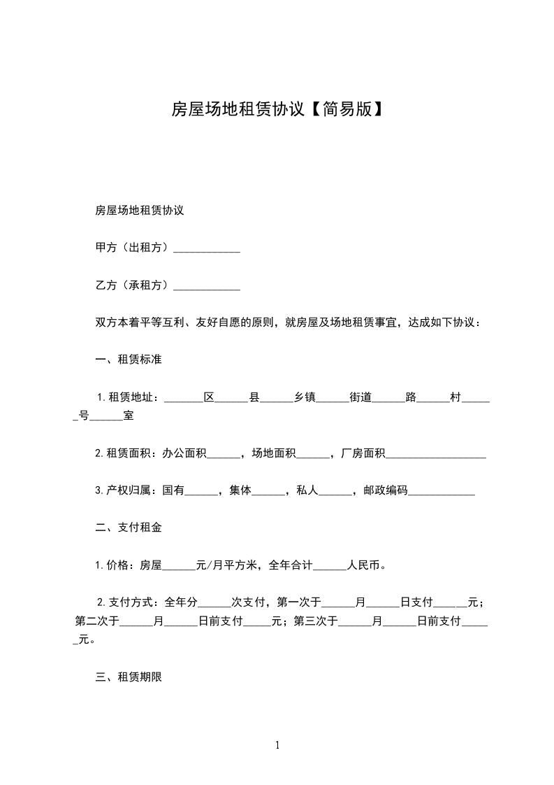 1.2上款所称房屋是指由甲方出租给乙方使用的场地、房屋及其配套设施。