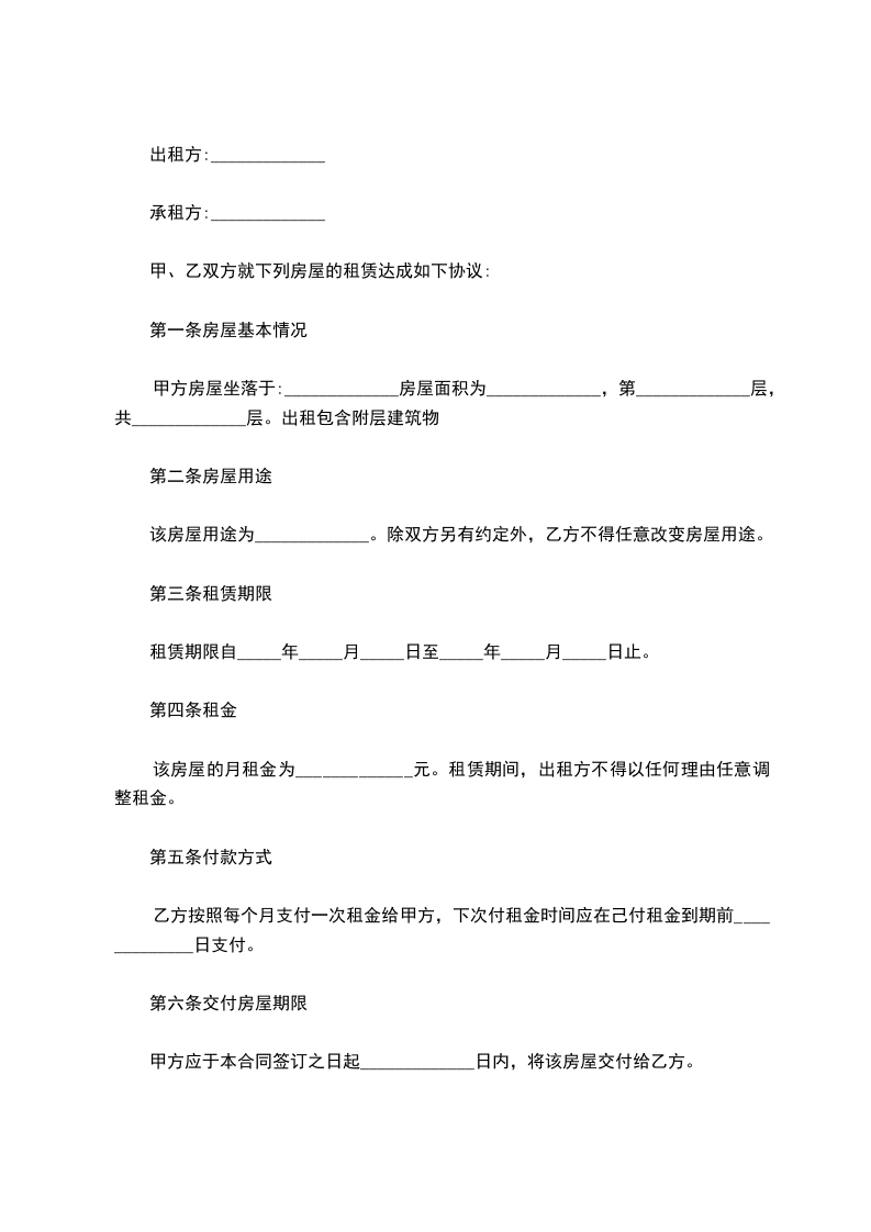 1.1乙方承租甲方位于____房屋,房屋建筑面积____平方米。