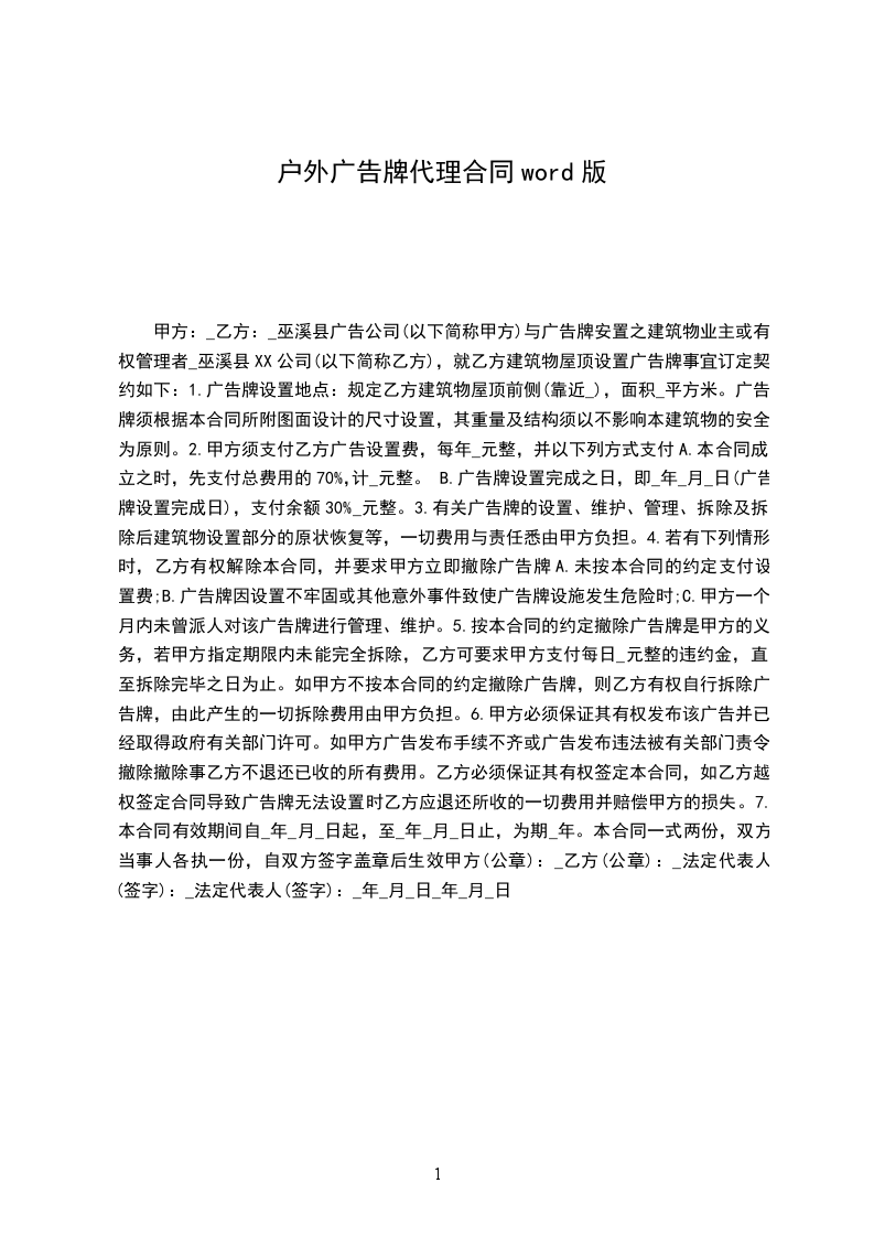 1、代理费用为合同金额的_______%,乙方为甲方开据广告费或咨询服务费收据。