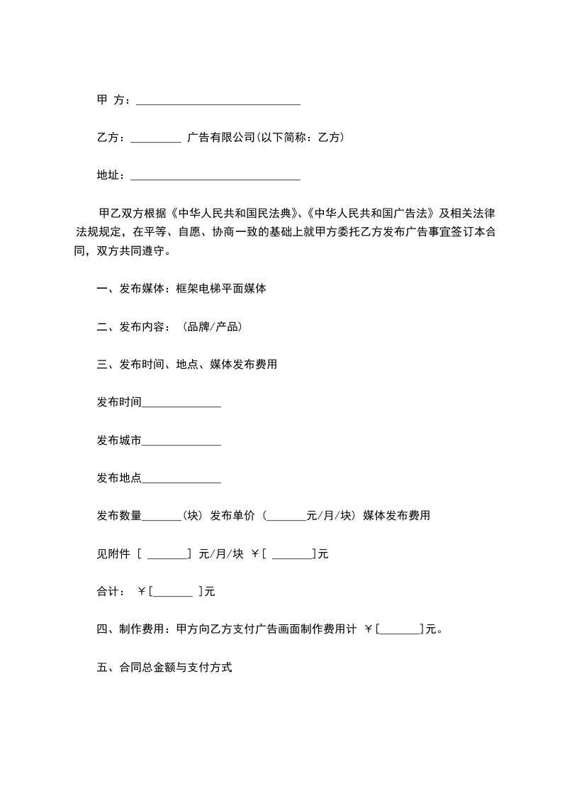 甲乙双方根据《中华人民共和国民法典》、《中华人民共和国广告法》等有关法律、法规和规章的规定,在自愿、平等、协商一致的基础上,签订本合同。