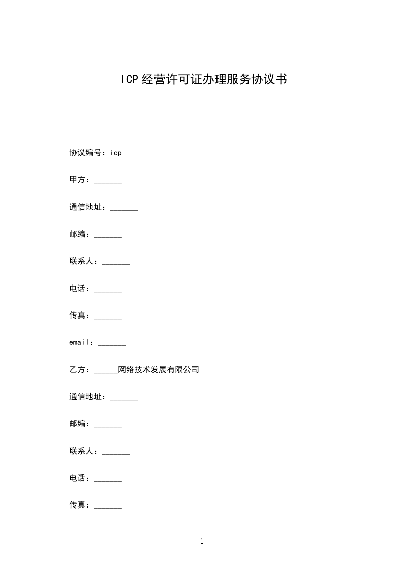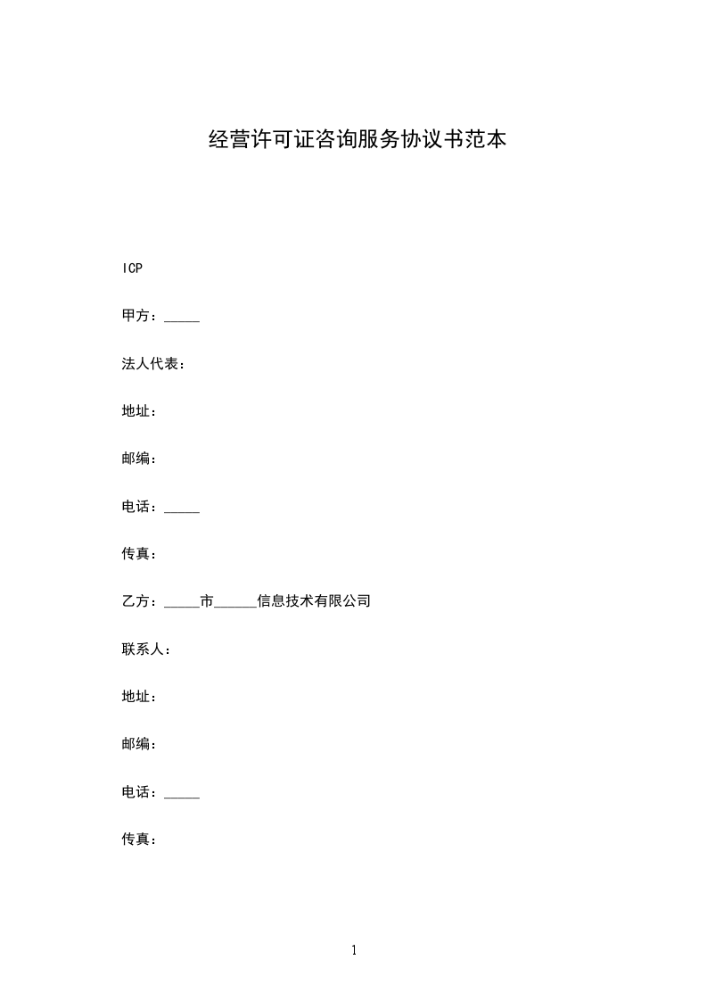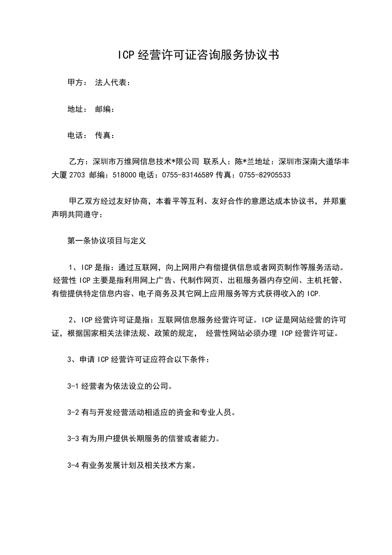 1-1协议期内,通过电话或电子邮件的方式,在协议附件约定范围内对甲方申办ICP经营许可证的有关问题进行指导和解答。