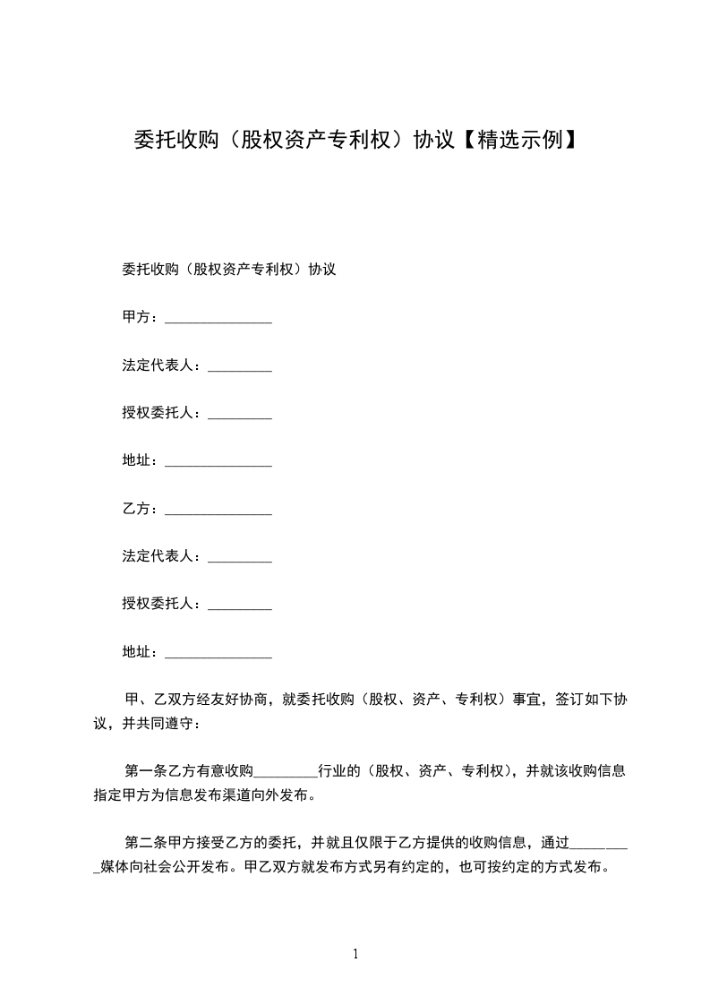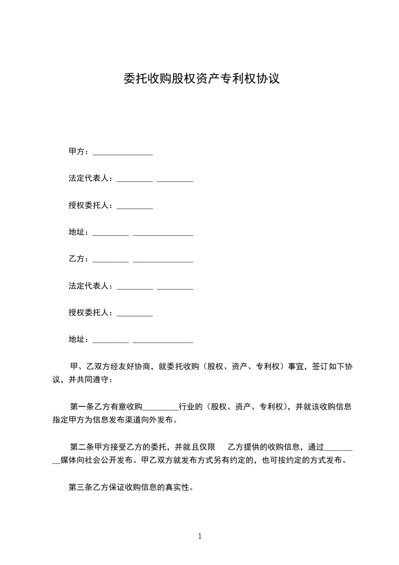 甲、乙双方经友好协商,就委托收购(股权、资产、专利权)事宜,签订如下协议,并共同遵守: