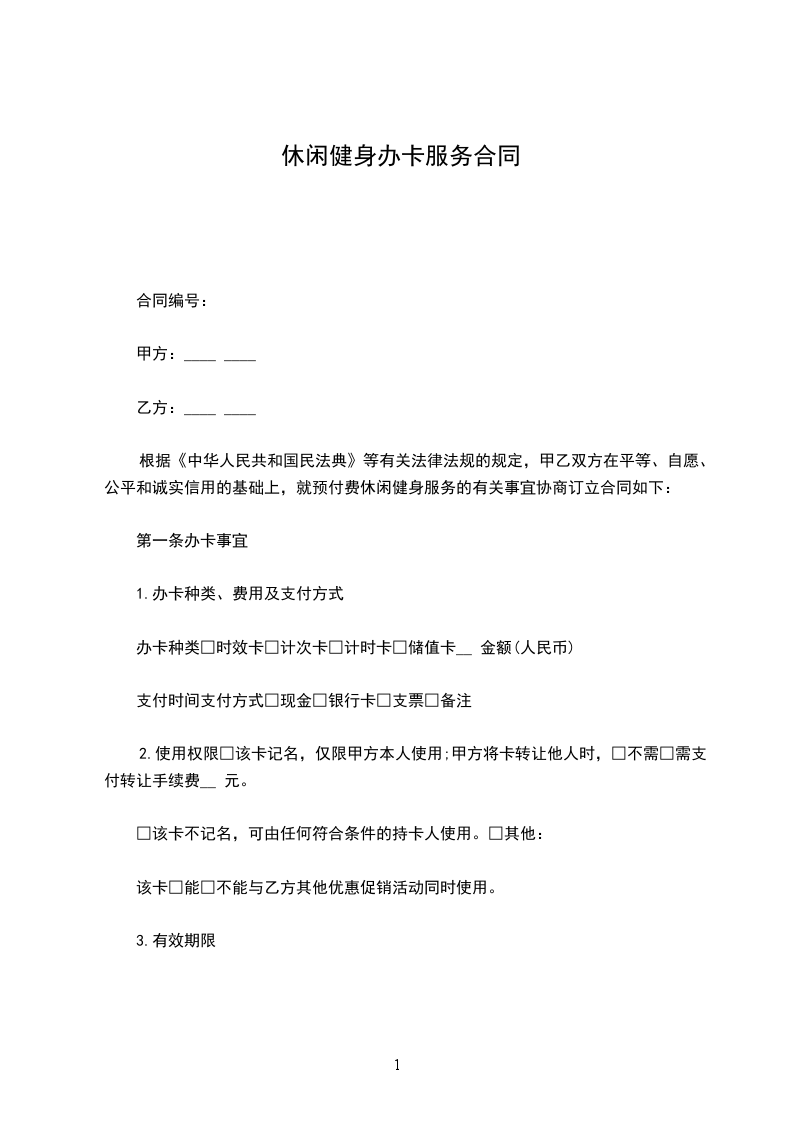 根据《中华人民共和国民法典》等有关法律法规的规定,甲乙双方在平等、自愿、公平和诚实信用的基础上,就预付费休闲健身服务的有关事宜协商订立合同如下: