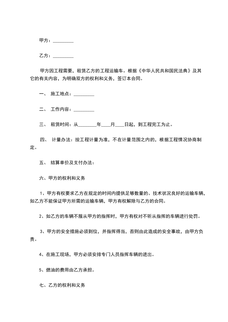 2、租赁期满,甲方有权收回该车辆,乙方应如期交还。乙方如要求续租,则必须在租赁期满 个月之前书面通知甲方,经甲方同意后,重新签订租赁合同。