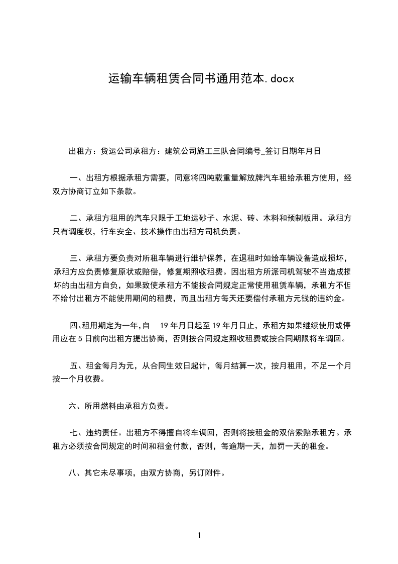 1、该车辆租赁期共________年。自________年____月____日起至________年____月____日止。