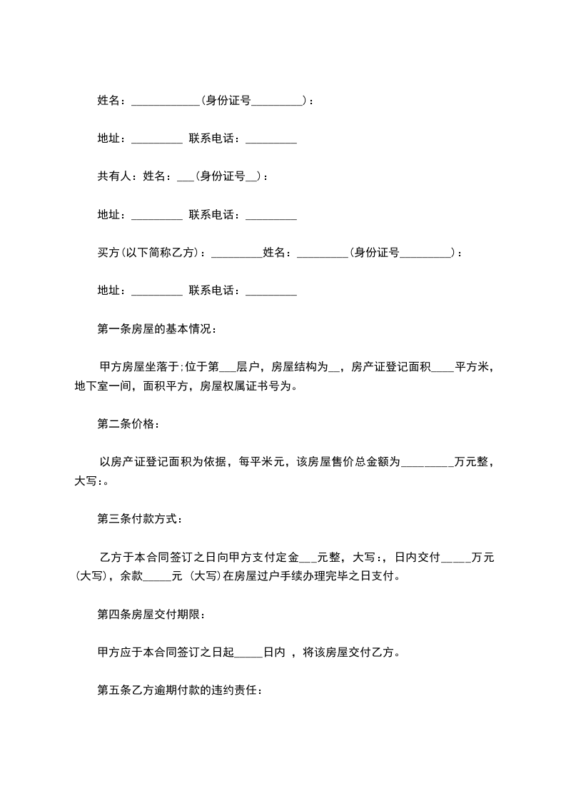 共有人:姓名:___(身份证号__):