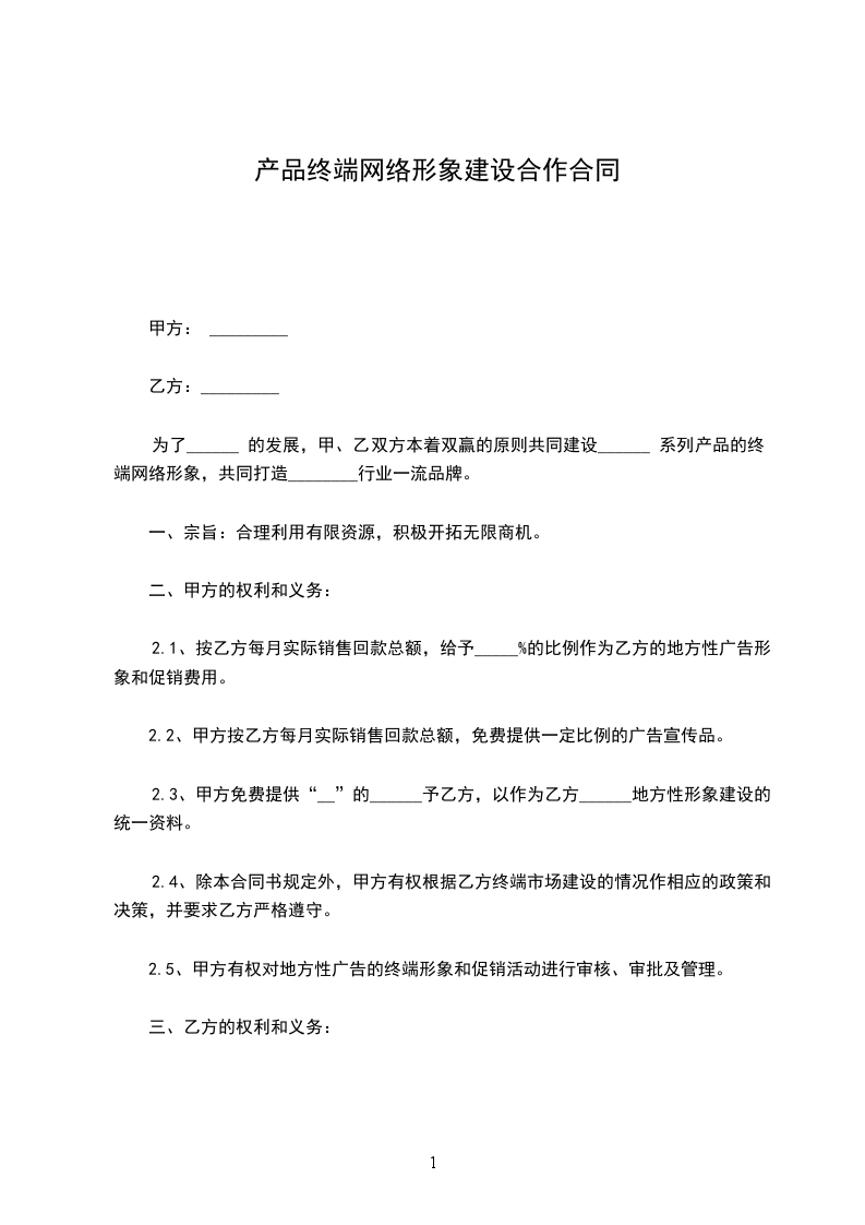 为了______ 的发展,甲、乙双方本着双赢的原则共同建设______ 系列产品的终端网络形象,共同打造________行业一流品牌。