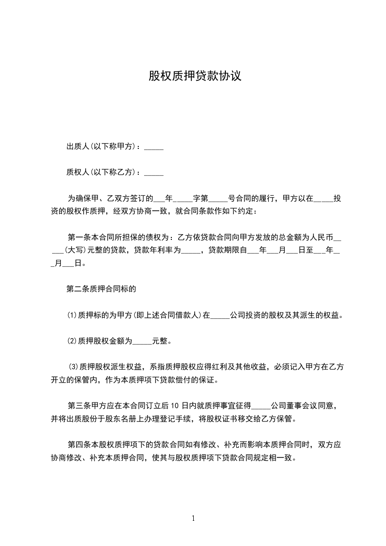 (2)质押股权金额为_____元 整。