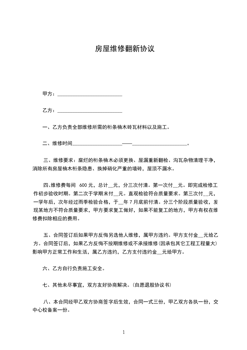 1、 甲方在合同期内向乙方支付20__元维修翻新费用,乙方用于劳务支出。