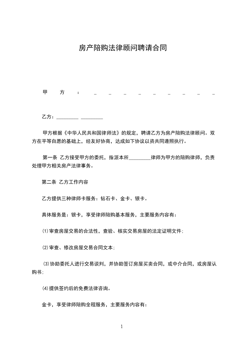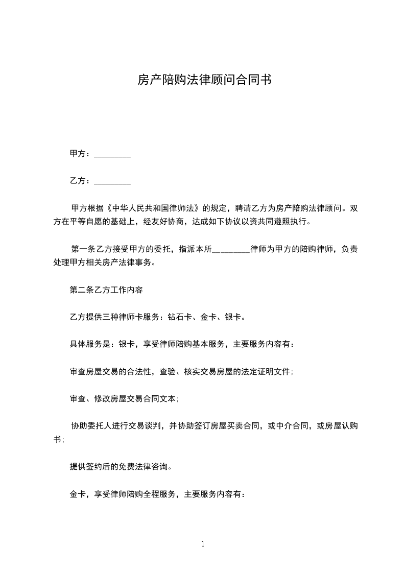 金卡,律师陪购全程服务:_________元/宗;