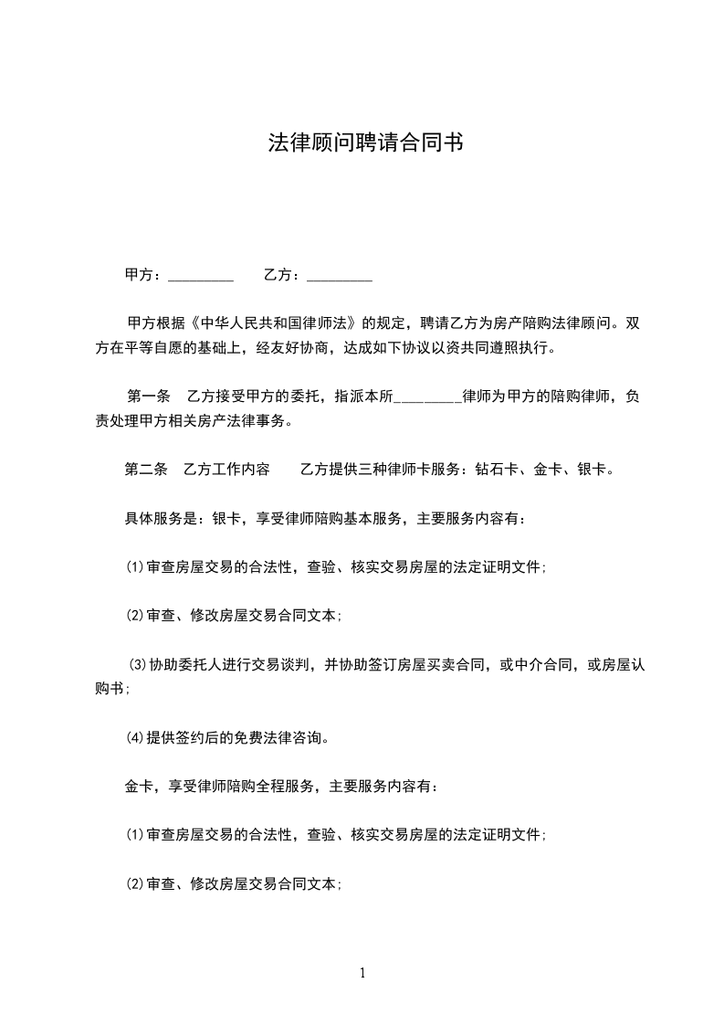 乙方提供三种律师卡服务:钻石卡、金卡、银卡。