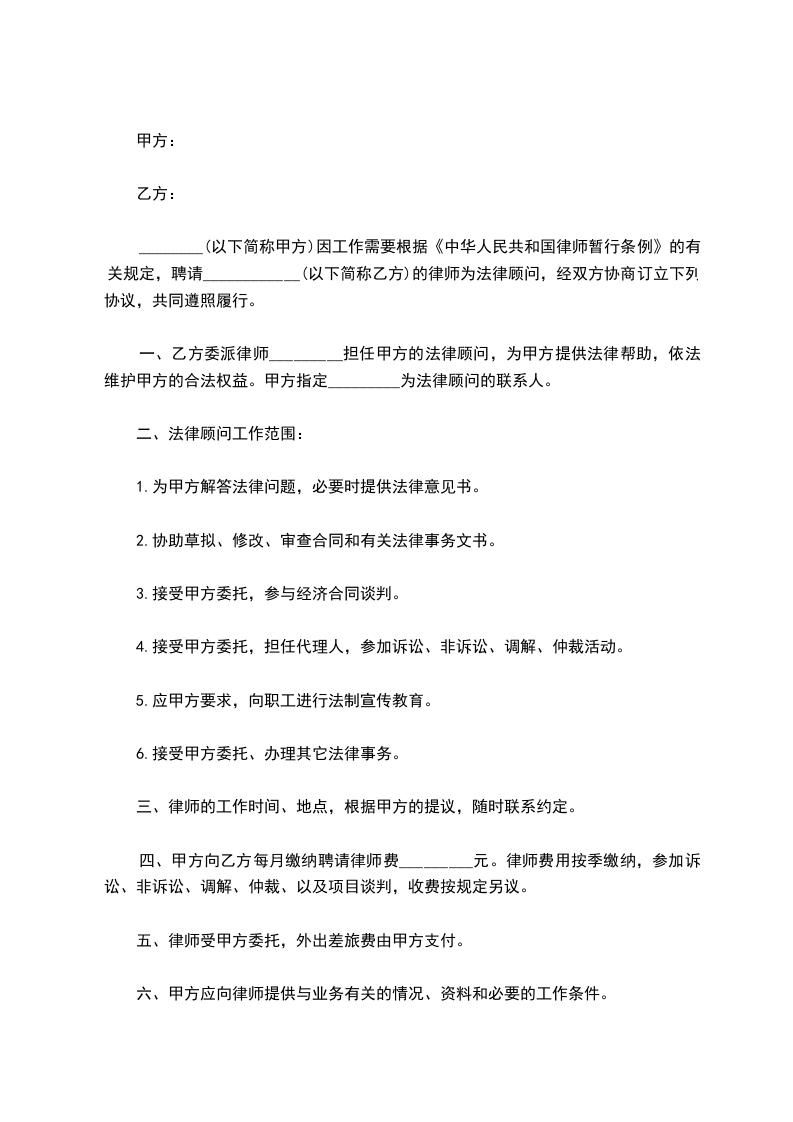 第六条 甲方无故终止合同,律师费不退还。