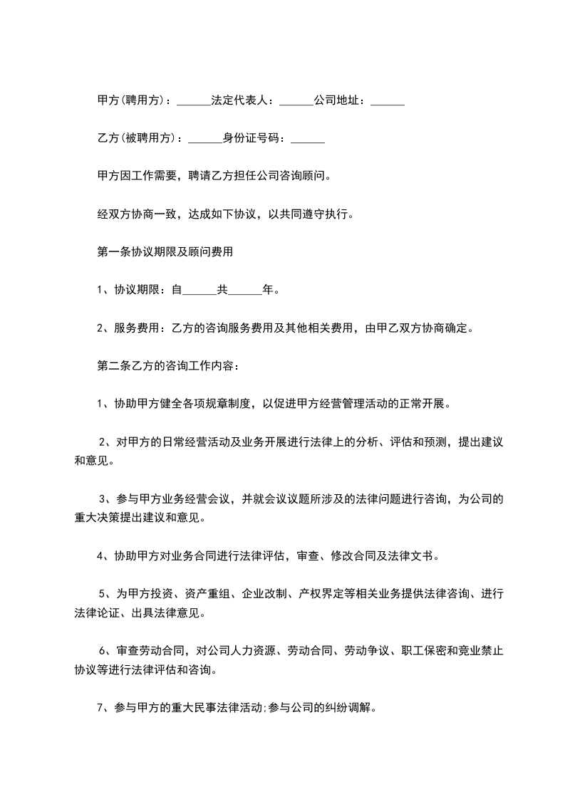 第二条 乙方工作内容