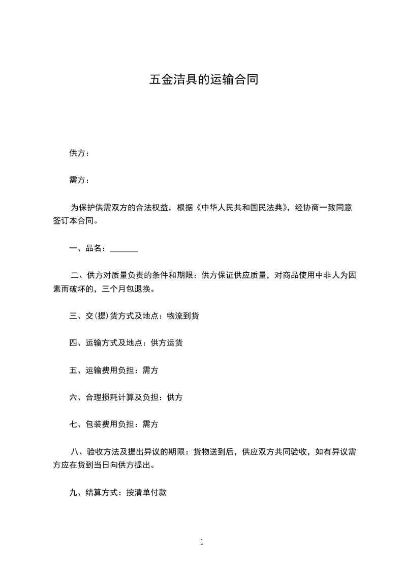 四、运输方式及地点:供方运货