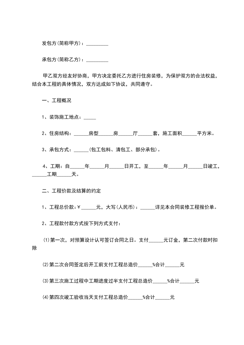 3、承包方式:______(包工包料、清包工、部分承包)。