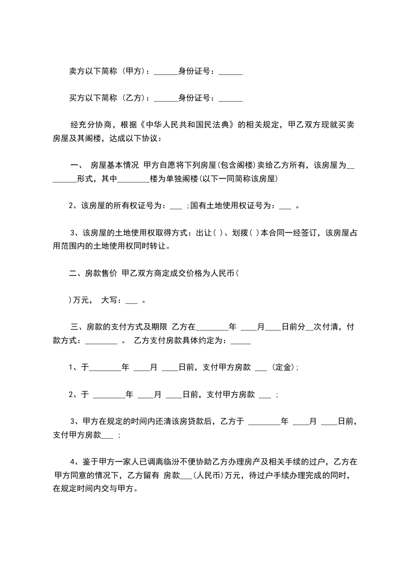 2、甲乙双方同意以一次性付款方式付款,并约定在房地产交易中心缴交税费当日支付首付款(含定金)人民币____拾____万____仟____佰____拾____元整给甲方,剩余房款人民币______元整 产权交割完毕当日付给甲方。