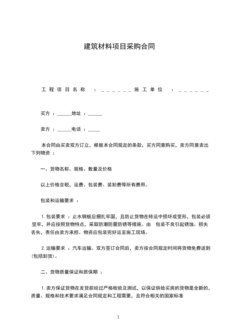 5、材料价格包括储藏、运输、装卸、保险、利润、税金、售后服务等费用。如与市场或政策性价格调整,应及时通知另两方协商作相应调整。