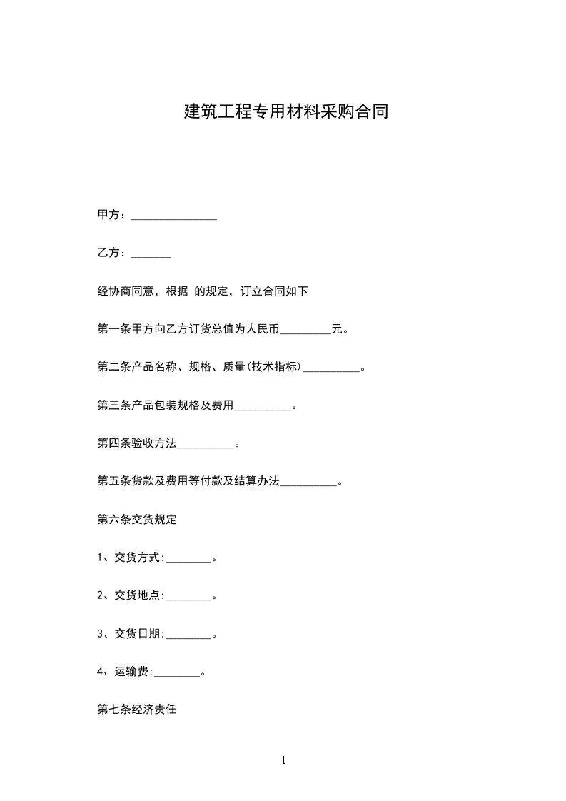 第一条甲方向乙方订货总值为人民币_________元。