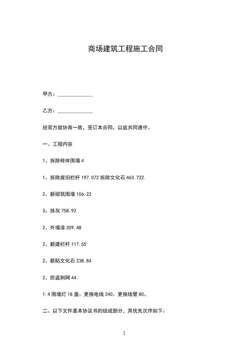 1.3 工程内容:_____26面防火分区消防墙及拆除部分还原(含电)