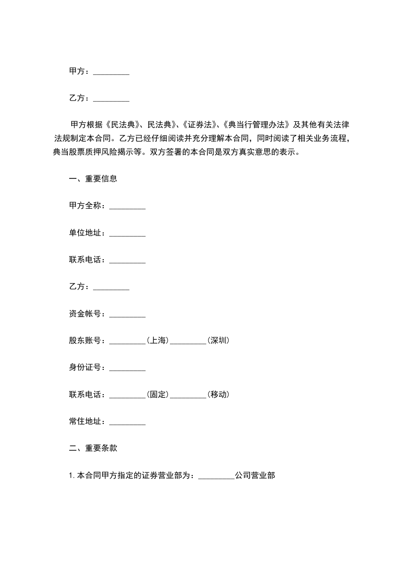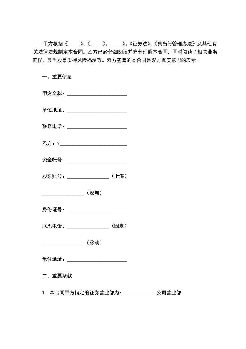 2.规避风险建议为保护会员资料和网上交易委托活动的的安全性,我们建议您注意以下几点:.请务必注意个人信息的保密,并定期修改您的交易密码和通讯密码,如果您意识到密码可能泄露,请及时修改密码;.请安装可信赖的病毒防火墙和网络防火墙软件,并确认其正常工作;.如果您的电脑系统,网络通讯或者网上交易相关软件出现异常情况,请暂时停止网上委托;样本:.请尽量不要在网吧等公共电脑上进行网上交易,以防止投资者信息被其他人获取。如有必要,请注意键盘输入和屏幕显示的保密,并且及时修改交易密码;警告股票质押获得当金的买卖有可能会危及会员质押账户的资产的亏损,或可能出现被甲方强行卖出股票,及强行划转资金等等风险。上述两类风险均可能会导致会员出现损失,并且该损失将由会员自行承担。