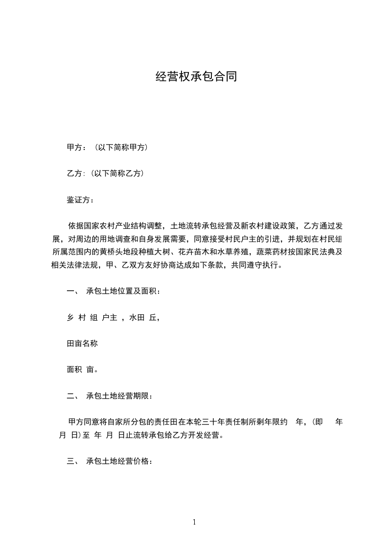 承包方:______,简称乙方,企业经营者_____。