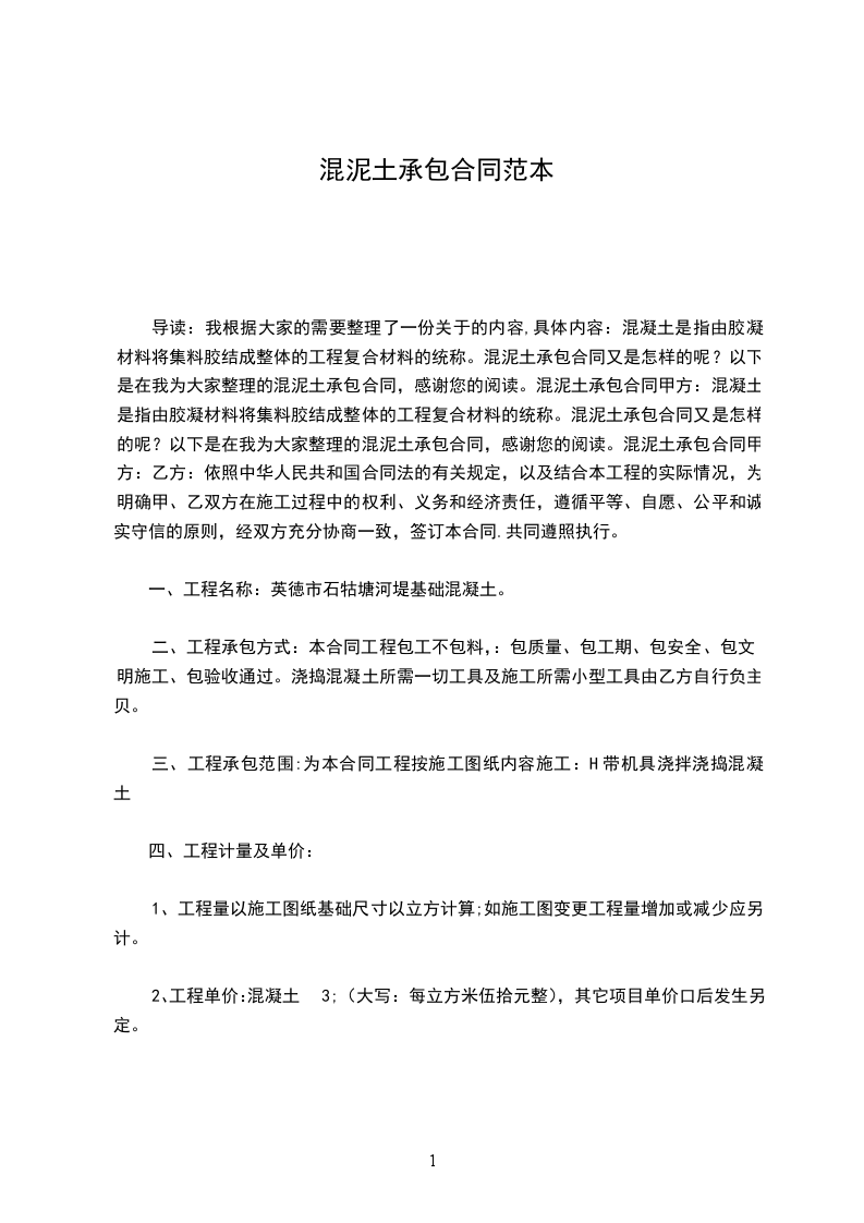 3、 甲方应做好浇筑混泥土前的一切准备工作(如道路、水电等)。如由 甲方原因造成的砼的报废,由甲方负责照价赔偿。