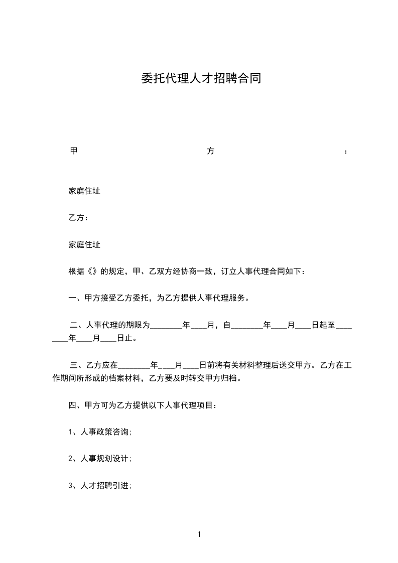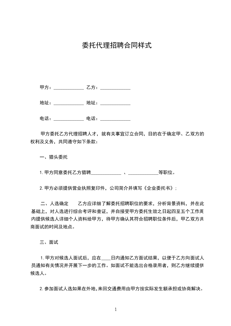 1.甲方同意委托乙方猎聘_____________ 、_____________等职位。