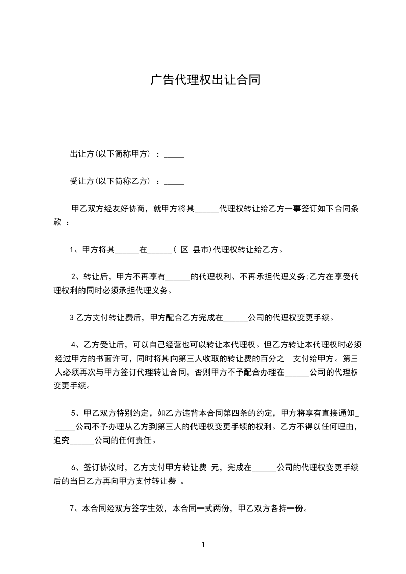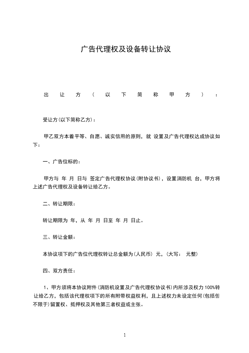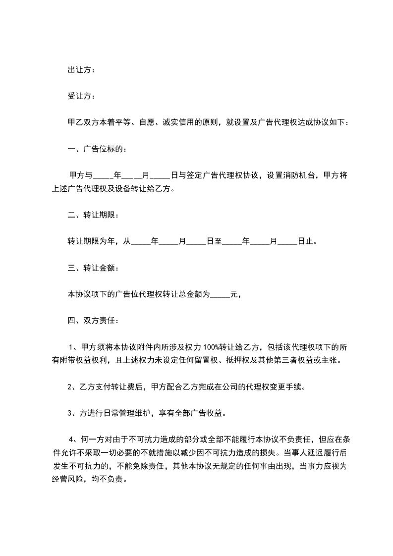 1、甲方将其______在______( 区 县市)代理权转让给乙方。