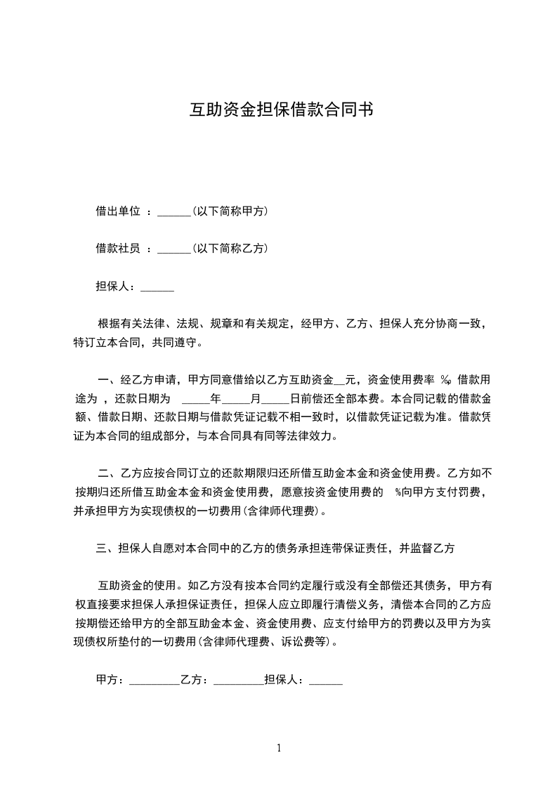 一、经乙方申请,甲方同意借给以乙方互助资金__元,资金使用费率 ‰,借款用途为 ,还款日期为 _____年_____月_____日前偿还全部本费。本合同记载的借款金额、借款日期、还款日期与借款凭证记载不相一致时,以借款凭证记载为准。借款凭证为本合同的组成部分,与本合同具有同等法律效力。