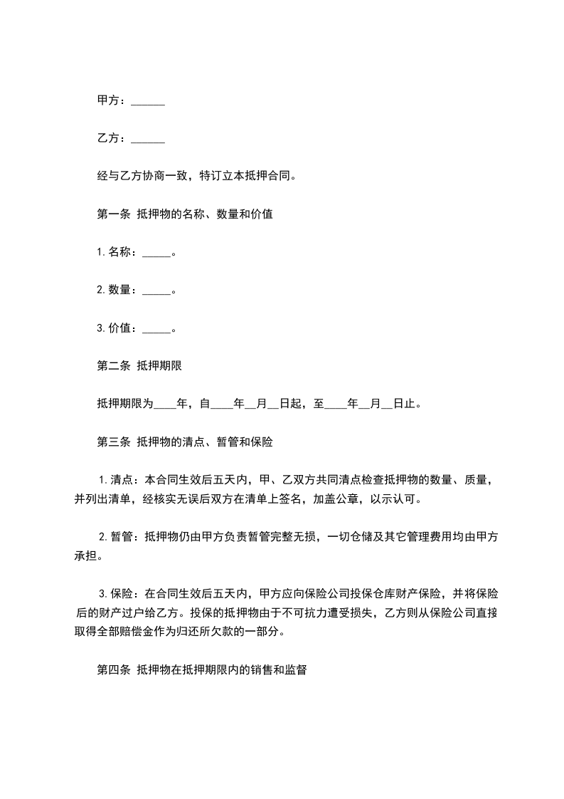 1.对甲方交来抵押物契据证件要妥善保管,不得遗失、损毁。