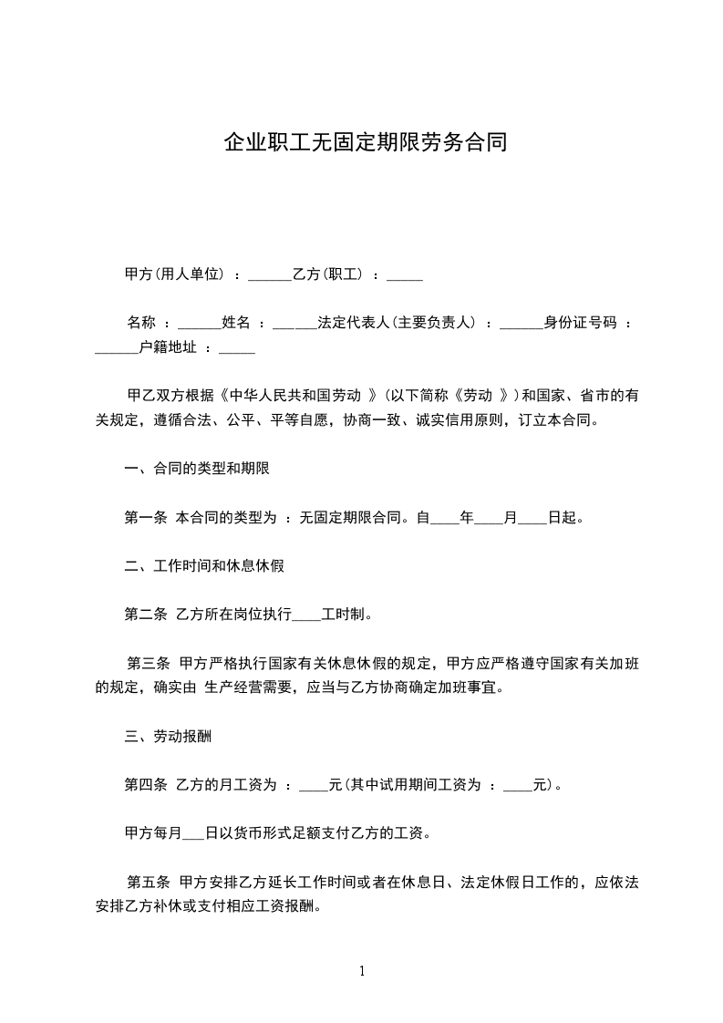 第一条 本合同的类型为 :无固定期限合同。自____年____月____日起。