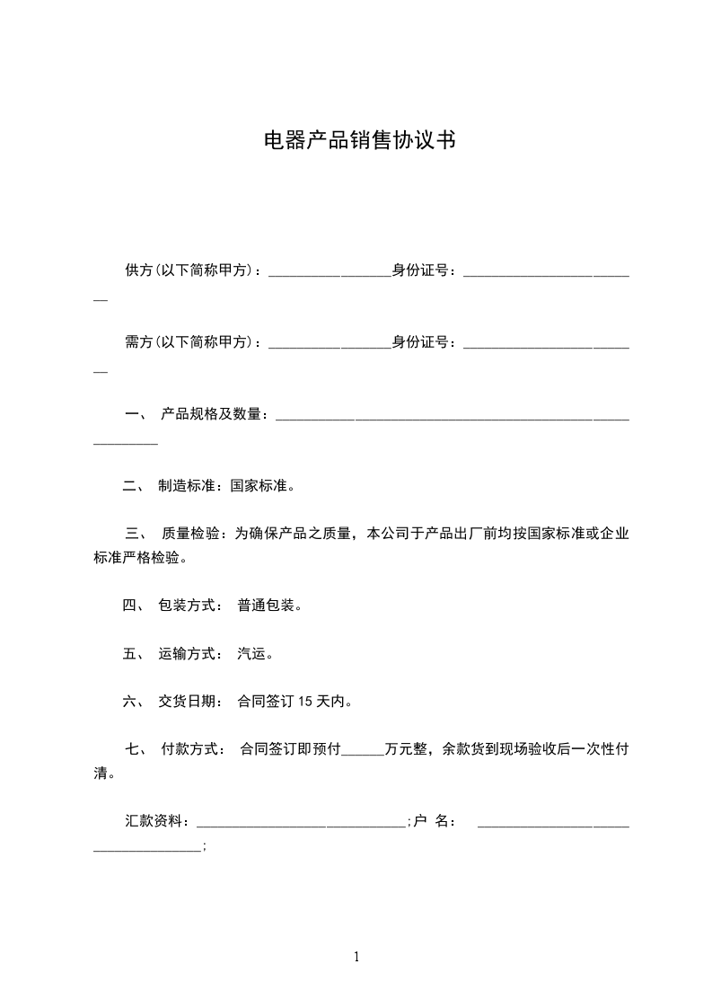 甲方应与_____年_____月_____日前先支付 (_____百元整)元定金。甲乙双方商定,甲方验收完毕后,甲方应一次性支付货款余款,计人民币:_____元(_____元整)