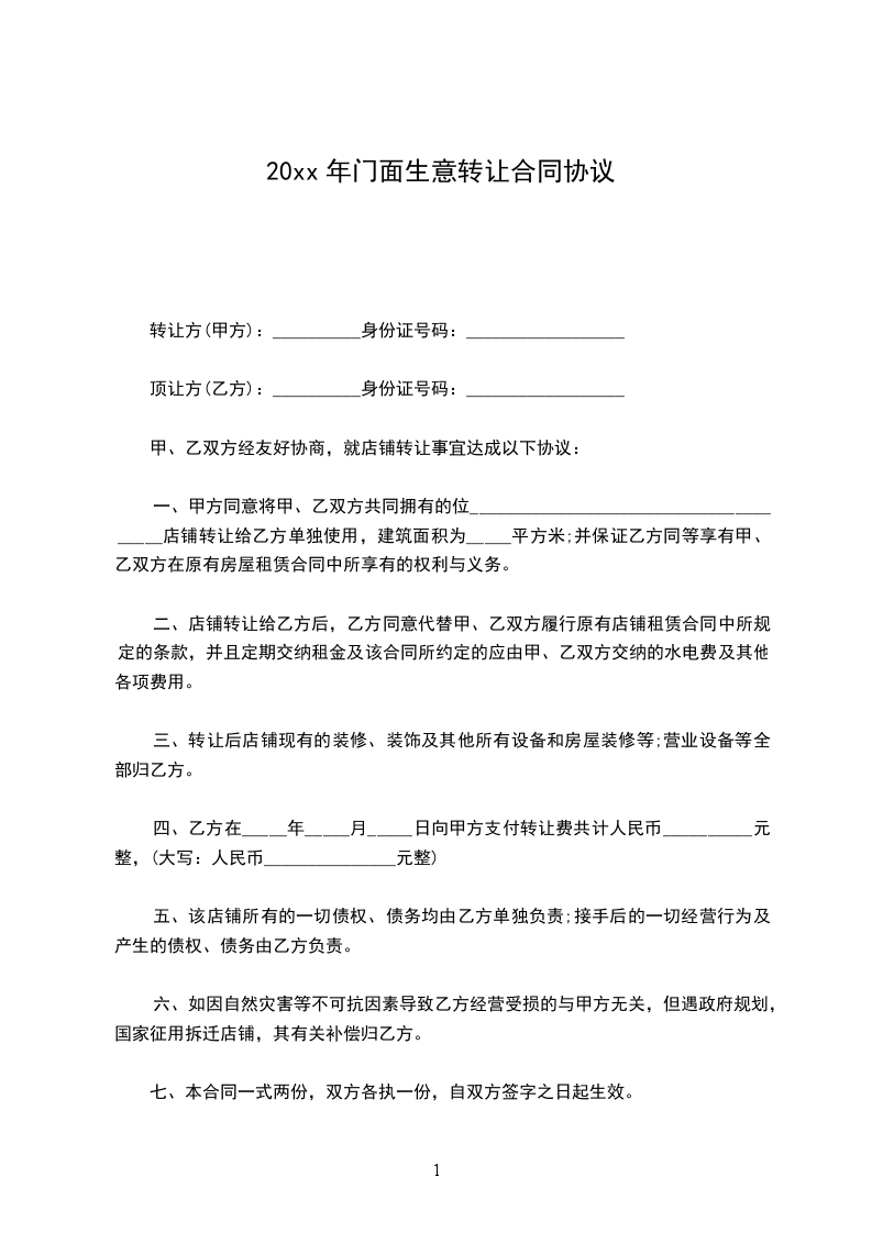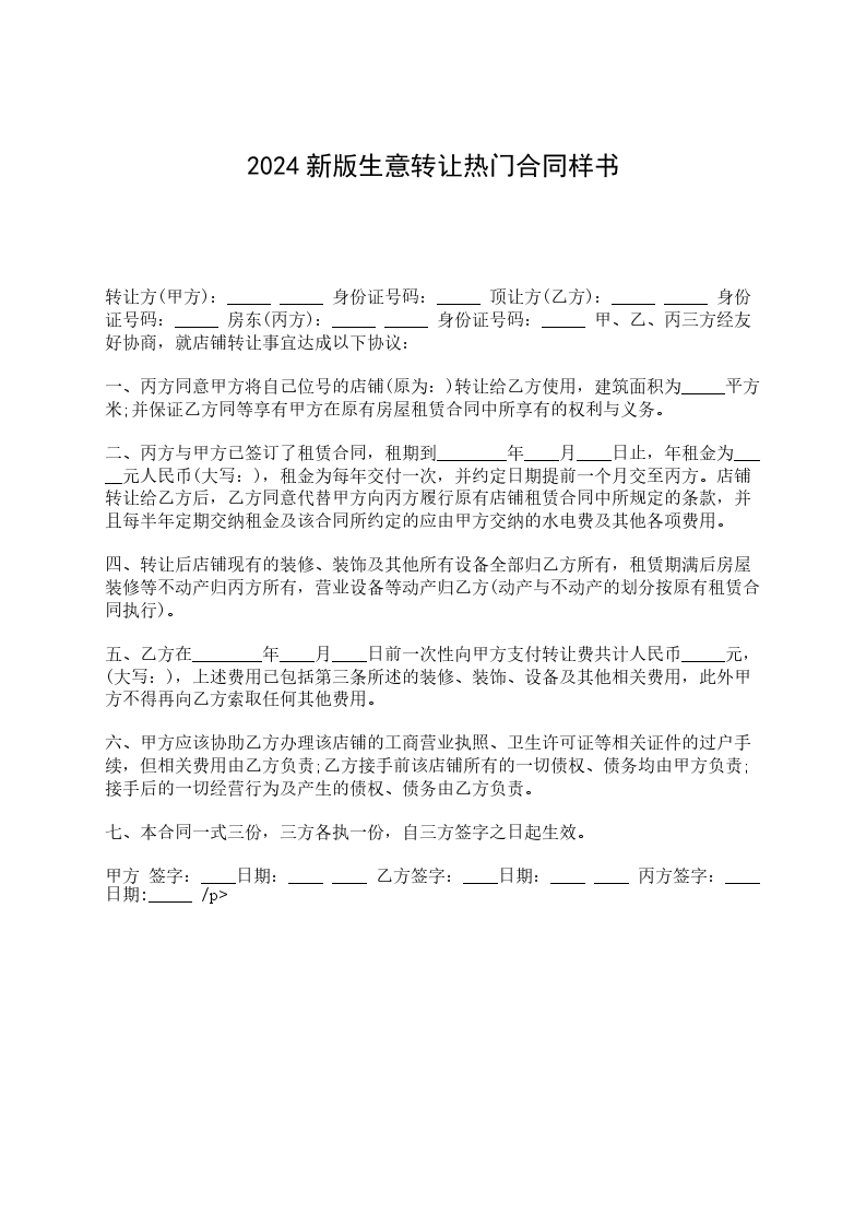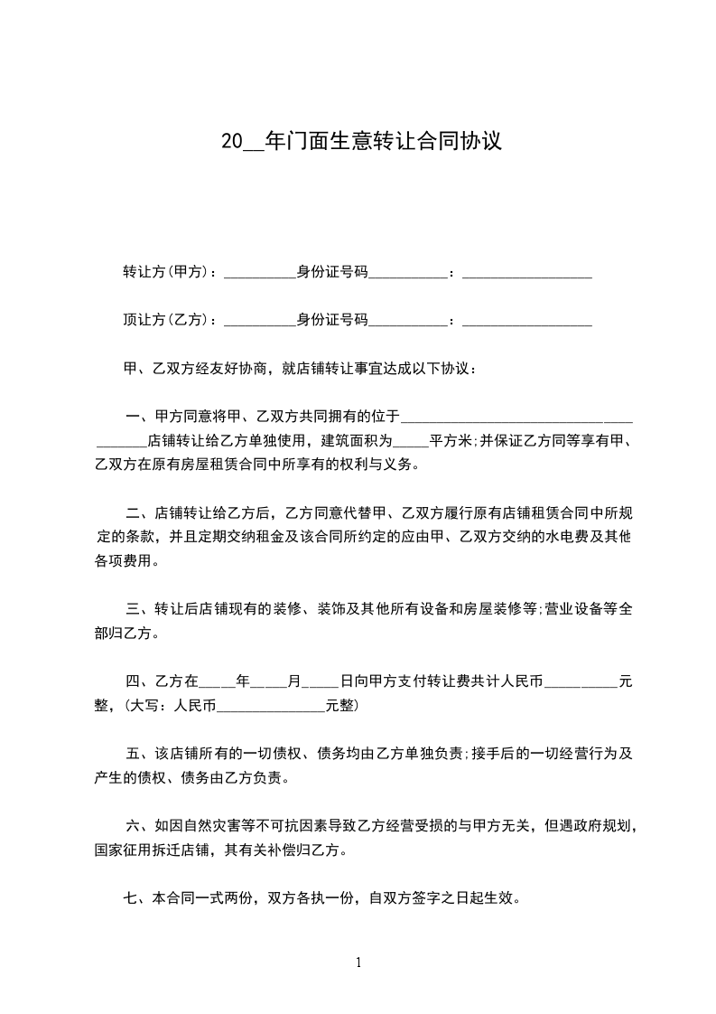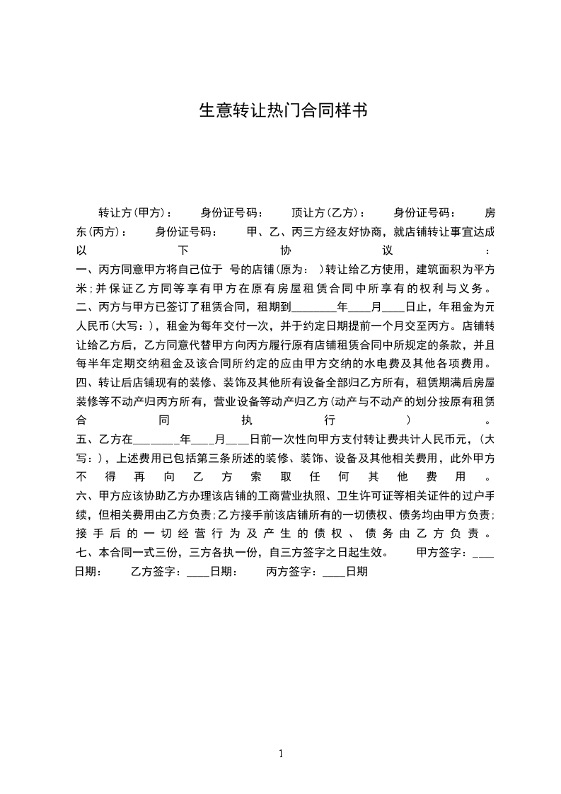 转让方(甲方): 身份证号码: 顶让方(乙方): 身份证号码: 房东(丙方): 身份证号码: 甲、乙、丙三方经友好协商,就店铺转让事宜达成以下协议: