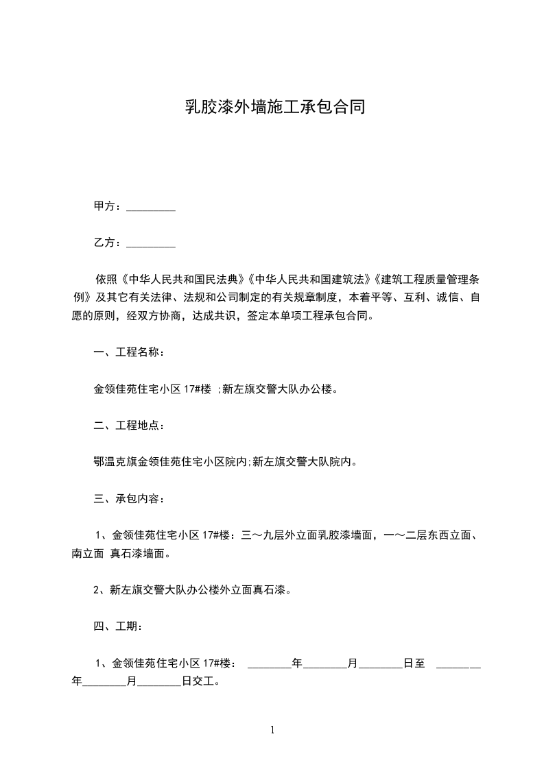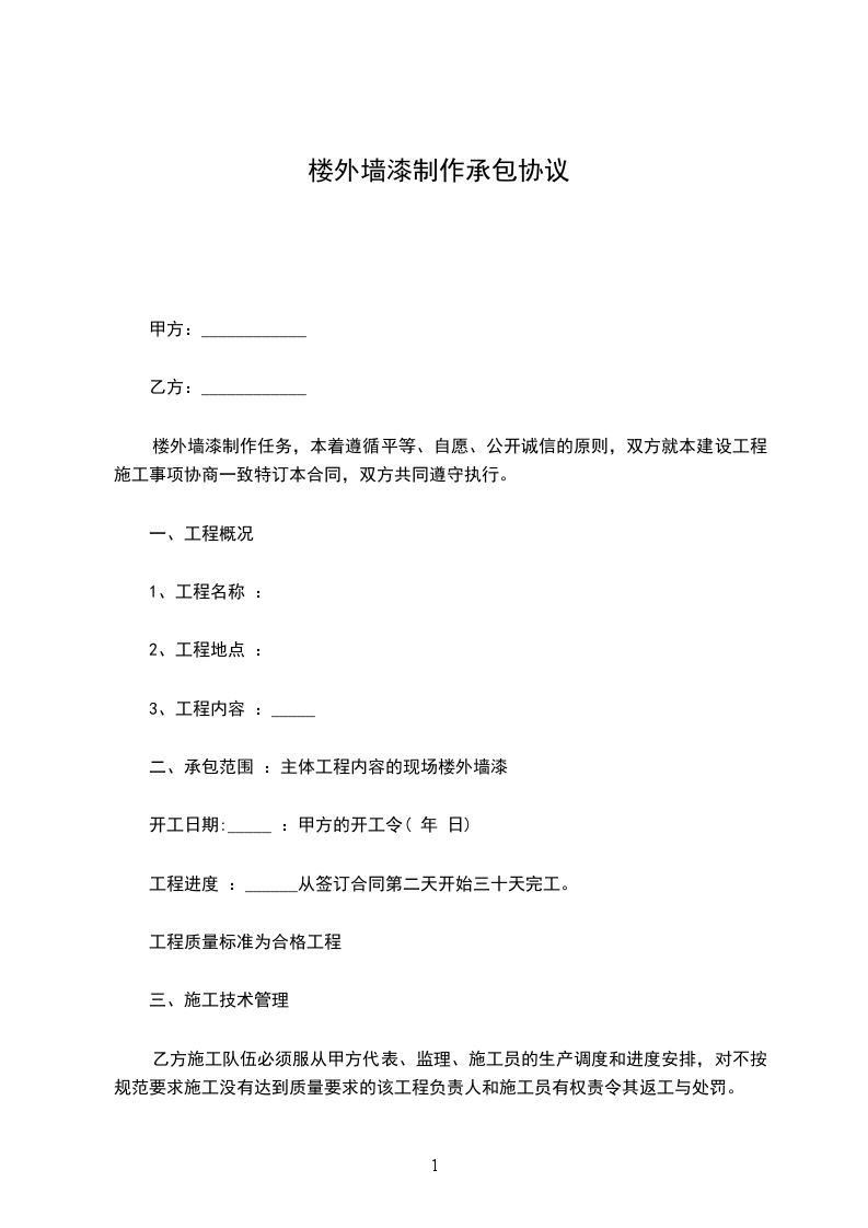 楼外墙漆制作任务,本着遵循平等、自愿、公开诚信的原则,双方就本建设工程施工事项协商一致特订本合同,双方共同遵守执行。