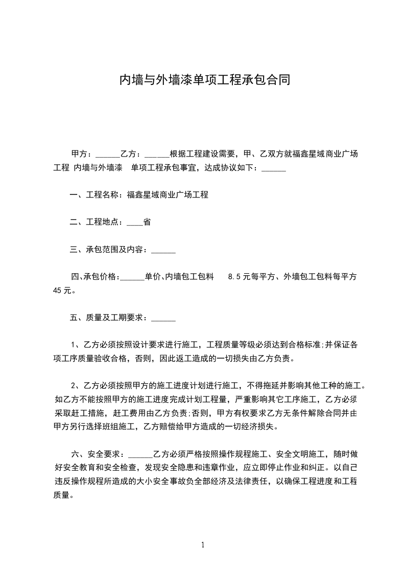 二、承包范围 :主体工程内容的现场楼外墙漆