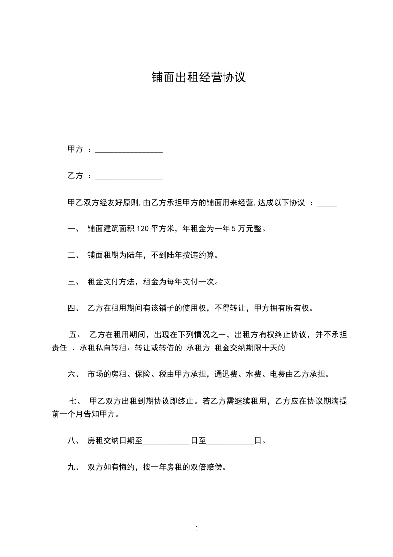 第一条 房屋坐落地址甲方出租的商铺坐落地址:____________号,建筑面积_______平方米。