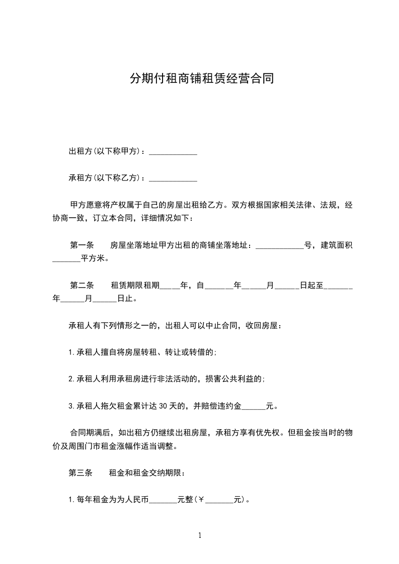 3.(或)为减轻乙方负担,经双方协商,甲方同意乙方租金分______期付款,付款期限及金额约定如下: